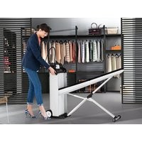 B4312 FashionMasterПаровая гладильная система С дисплеем и сотовой подошвой — для отличных результатов глажкиРавномерное распределение пара – сотовая структура подошвы MieleПревосходные результаты благодаря давлению пара 3,5 в барНажатием кнопки на утюге можно выбрать способ отпаривания – «паровые удары» или постоянный пар.Удобно устанавливать и хранить благодаря сборке сист. «в 2 шага» Глажка высочайшего уровня благод. гладильн. столу с вентиляторомУ активного гладильного стола есть три функции, которые упрощают глажку.Функция поддува: воздушная «подушка» позволяет гладить ткань без чрезмерного механического воздействия.Функция отвода пара: пар глубоко проникает в одежду, уменьшается образование конденсата. Кроме того, изделия прижимаются к столу и не скользят.Функция памяти: прибор запоминает используемую функцию (поддува или отвода пара) и автоматически выключает её во время перерывов в глажении.Если утюг не используется, после 3 минут он автоматически отключается.Благодаря встроенной газовой пружине стол можно отрегулировать до нужной рабочей высоты (83-102 см).Для глажки многослойных изделий не нужно выполнять двойную работу – гладить с двух сторонПеред первым использованием FashionMaster прибор ознакомит вас с наиболее важными настройками. Вам необходимо будет только выбрать язык для отображения информации и установить жёсткость воды.Антипригарная подошва.Ширина в мм, в сложенном виде - 470Высота в мм, в сложенном виде - 1.280Глубина в мм, в сложенном виде - 370Площадь гладильного стола в мм - 1200 x 400