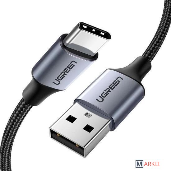 Кабель Type-C - USB 2.0 для зарядки 2 м 3А плетеный Ugreen US288 (быстрая зарядка QC 3.0)