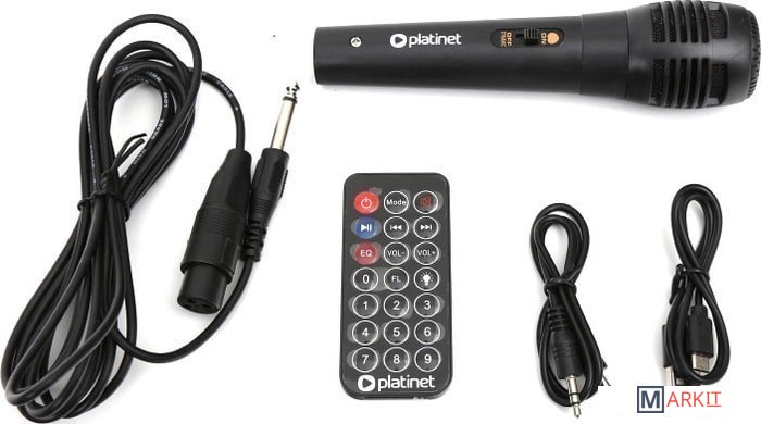 - пульт ДУ- один проводной микрофон- аудиокабель (3-pin XLR - 6.3 мм)- аудиокабель (3.5 мм - 3.5 мм)- кабель для зарядки- документация |