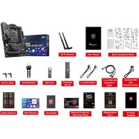 Поддержка процессоров 12-го поколения Intel Core, Pentium Gold и Celeron для сокета LGA 1700Поддержка памяти DDR5 с частотой 6400+МГц (в режиме разгона)Высокоскоростные интерфейсы: слот PCIe 5.0, Lightning Gen 4 x4 M.2, USB 3.2 Gen 2x2Мощная система питания: схема 16+1+1 с прямым подключением фаз, два 8-контактных разъема питания процессора, технологии Core Boost и Memory BoostЭффективная система охлаждения: алюминиевый кожух с большим радиатором и тепловой трубкой, термопрокладки на транзисторах с теплопроводностью 7 Вт/(м·K), дополнительные термопрокладки на дросселях, радиаторы Shield Frozr на слотах M.2Подсветка Mystic Light: 16,8 млн цветов и несколько визуальных эффектов, подключение внешней адресуемой и неадресуемой подсветкиКонтроллеры 2.5G Ethernet (с трафик-менеджером LAN Manager) и Intel Wi-Fi 6: высокоскоростное и стабильное проводное и беспроводное сетевое подключение для широкого спектра приложенийАудиосистема Audio Boost 5: высококачественное звучание, создающее неповторимую атмосферу в играхВысококачественная конструкция: 6-слойная печатная плата с увеличенным содержанием медиПредустановленная панель ввода/вывода: защищает от электромагнитных помех и облегчает установку материнской платы