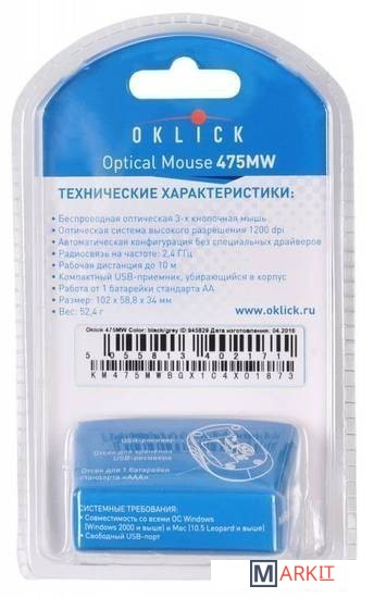 Markit » Компьютерные мыши » Мышь Oklick 475MW (серый) [945829]