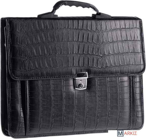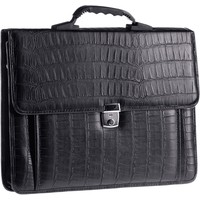 Мужской бизнес-портфель из искусственной кожи с фактурой под кожу рептилии OfficeSpace Palermo чёрного цвета. Размер: 380*290*90 мм. Портфель имеет пластиковую ручку, закрывается на клапан с замком-защёлкой и на ключ. Внешний карман – спереди. В комплекте есть плечевой текстильный ремень для удобства. Внутри три отделения для хранения документов формата А4.